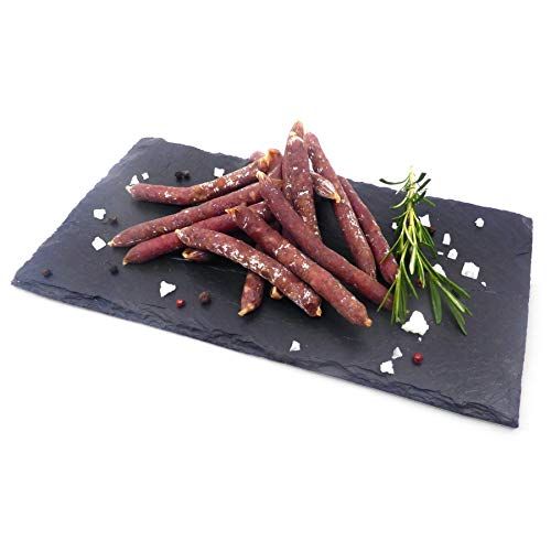 Es handelt sich dabei um die typische luftgetrocknete Salami aus Katalonien und den Ausläufern der Pyrenäen. Dort reifen sie an der frischen Bergluft zu einer leckeren Delikatesse.