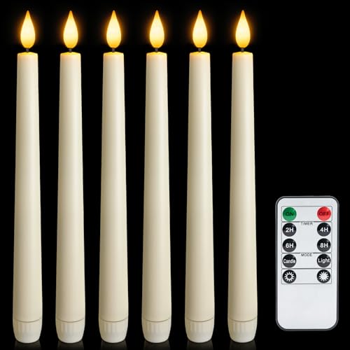6 Pcs Flameless Taper Candles with Remote, Timer, Plastic Battery Operated Window Candles, 9.6 Inches Ivory LED Candlesticks, for Halloween Christmas Home Decoration