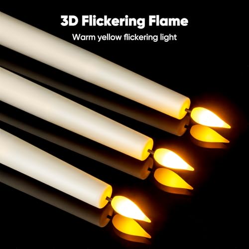 Realistic Plastic Candle Design: These realistic battery operated taper candles are crafted from plastic that resists melting and cracking, ensuring long-lasting use. Designed with 3D LED bead and a black wick, they perfectly replicate the look of real candles. The 3D LED bead creates a flickering flame effect that looks flawless from every angle, delivering an authentic candlelight experience.