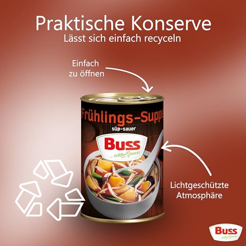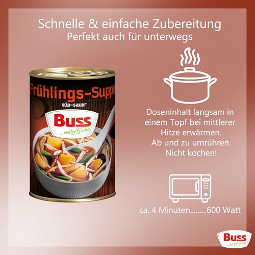 Die süß-saure Suppe ist schnell verzehrbereit, in dem man sie in der Mikrowelle oder einem Kochtopf für ein paar Minuten erwärmt. Dadurch ist der exotische Suppentopf auch ideal für unterwegs geeignet. Die Frühlingssuppe von Buss ist ein echter Genuss nach chinesischer Art – auch perfekt für die kalte Jahreszeit.