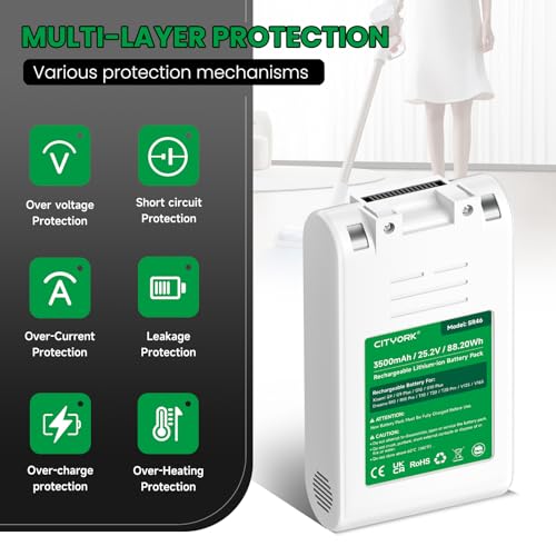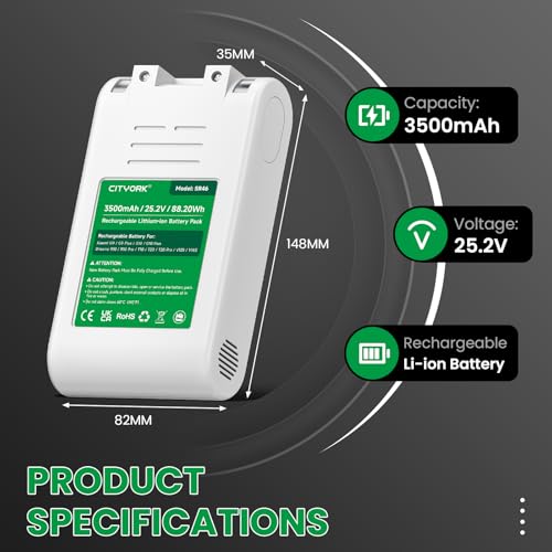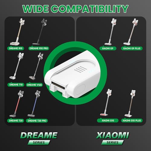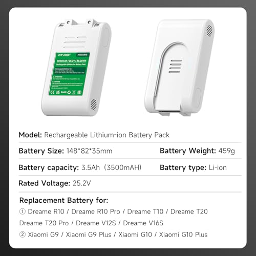 Wiederaufladbarer Lithium-Ionen-Akku: 25.2V, 3500mAh/88.2Wh. kompatibel mit Xiaomi G9/G9 Plus/G10/G10 Plus, Akku für Dreame R10/R10 Pro/T10/T20/T20 Pro/ V12S/V16S. Hinweis: Achten Sie vor dem Kauf darauf, dass Akkugröße, Stecker und Spannung zu Ihrer Maschine passen.