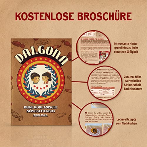 Dalgona-Box mit über 30 koreanischen Süßigkeiten – Ausgewählter Mix aus vielseitigen Snacks, Candy und Getränken in einer XXL Geschenkbox – Spezialitäten aus aller Welt