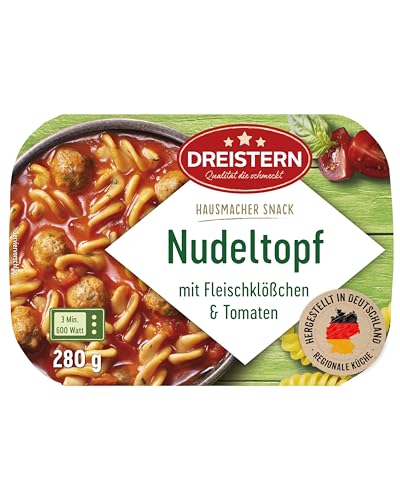 Dreistern Little Hot Kitchen Nudeltopf mit Nudeln und Tomaten. Leckerer Hausmacher Snack mit viel Inhalt. In der praktischen Mikrowellenschale. Regionale Küche, hergestellt in Deutschland. Inhalt: 280g. Durch schonende Garprozesse bleiben die wichtigen Vitamine und Mineralstoffe in unseren leckeren Produkten erhalten und unterstützen Ihre gesundheitsbewusste Ernährung. Unsere Klassikerin der Mikrowellenschale eignen sich ideal für die Bevorratung ohne Kühlung