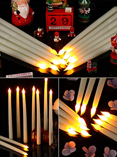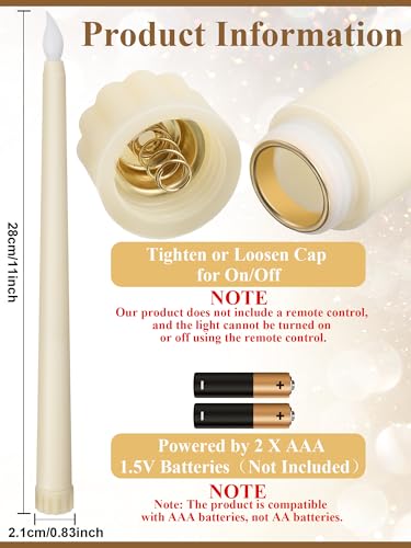 Easy to Decorate: each flickering candle measures about 0.8 x 11 inches, fits most standard and plastic taper candle holders, easy to notice, each LED candle requires 2 AAA batteries (not included in package), convenient to replace