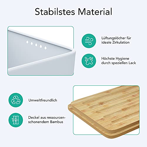 ![STERNEKOCH® Brotkasten aus Metall - Frisches Brot aufbewahren - Inkl. Bienenwachstücher [MADE IN GERMANY] und Brotbeutel - Brotbox mit Bambusdeckel und integriertem Schneidebrett | 33x21x14,5cm (Weiß) – Bild 3](https://m.media-amazon.com/images/I/41yzWpluT3L.jpg)