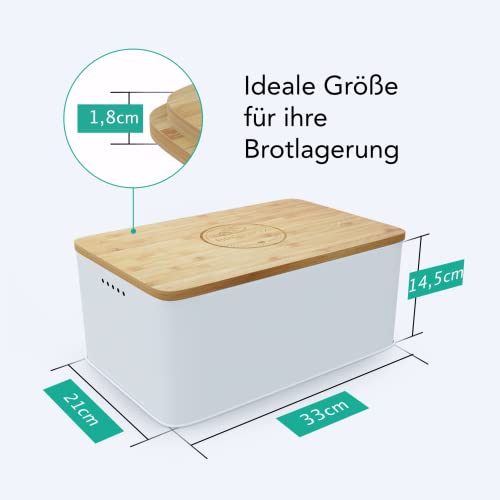 ![STERNEKOCH® Brotkasten aus Metall - Frisches Brot aufbewahren - Inkl. Bienenwachstücher [MADE IN GERMANY] und Brotbeutel - Brotbox mit Bambusdeckel und integriertem Schneidebrett | 33x21x14,5cm (Weiß) – Bild 7](https://m.media-amazon.com/images/I/518V4VKaAJL.jpg)
