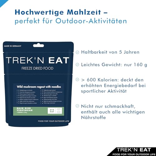 Trek’n Eat Waldpilzragout mit Nudeln – Outdoor-Fertigmahlzeit (vegetarisch) | Gefriergetrocknete Trekkingnahrung mit hohem Energiegehalt – ideal für Camping, Wandern & Expeditionen