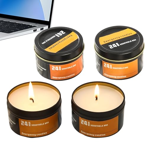 Unscented Candles Winddicht, 4 Stück, lange brennende Kerzen | Survival Tea Lights Tin Wax Kerzen für Backpacking Adventure Indoor Home Party Yard Garden Hiking