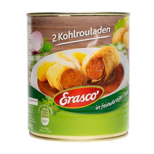 Erasco deftig-würzige Kohlrouladen in herzhafter Sauce sind aus erntefrischem Weißkohl mit einer schmackhaften Hackfleischfüllung ein leckeres, schnell zubereitetes Gericht aus der Dose.