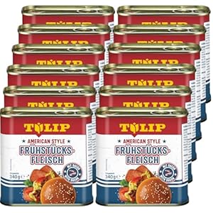 12x TULIP American Style Frühstücksfleisch 340g | leckeres Dosenfleisch in der praktischen recycelbaren Konserve | Schweine-Frühstücksfleisch mit Bacon| 87% Schweinefleisch